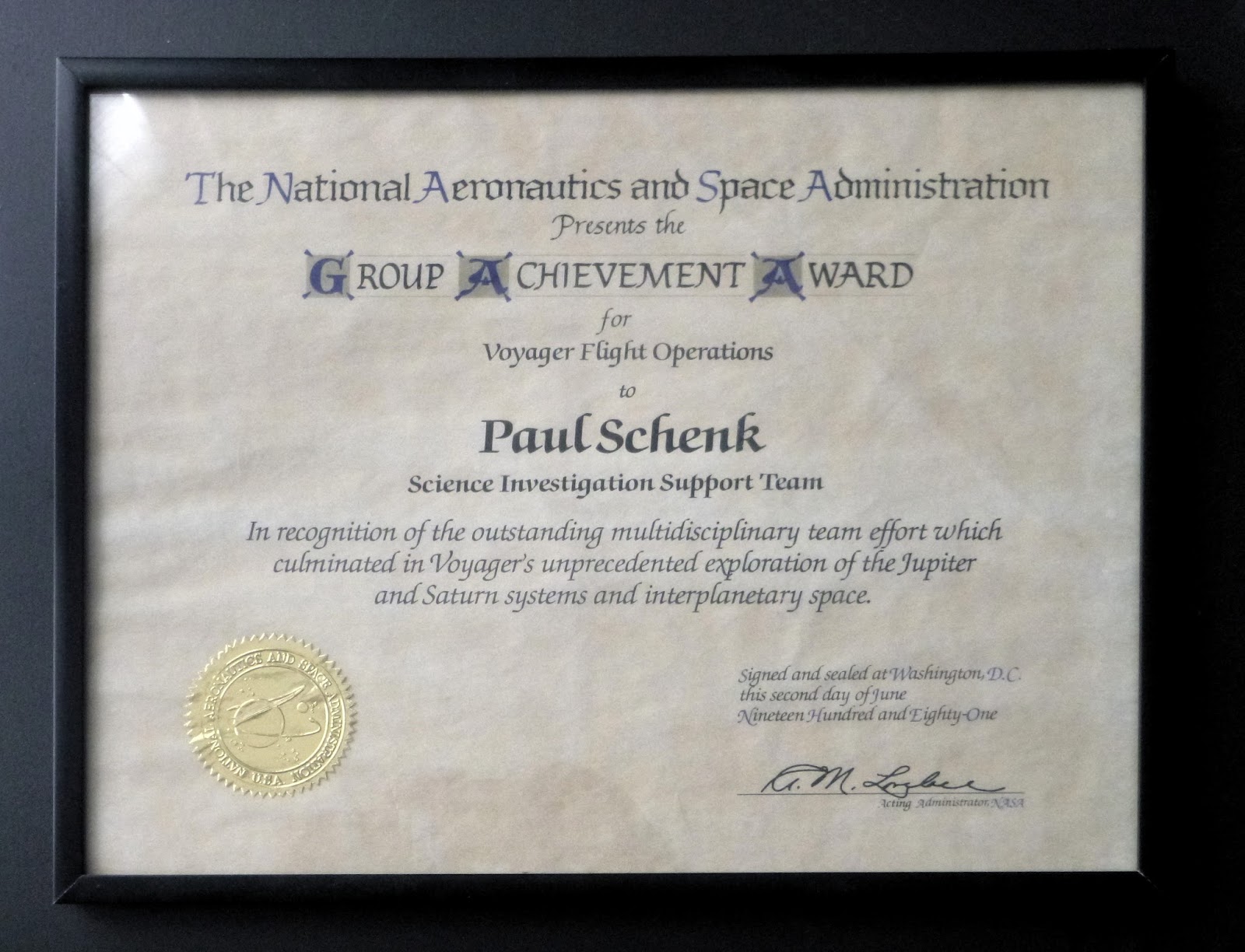 Two years after my first Voyager Summer, I was invited back to be part of the Voyager 2 encounter with Saturn in the summer of 1981. I was now a graduate student at Northern Illinois University. I don’t remember much about that summer, except of course Saturn, looming larger in our monitors each day. I was working for Linda Horn (now Spilker) on the Voyager IRIS infrared detector; and it pleases me no end to see 35 years later Linda serve as Project Scientist (kinda the boss) of the Cassini project now orbiting the ringed planet!