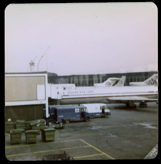 | Departure from Buffalo. Mom is on the right. They could all walk up to the gate back then. Lesson 2: Never stand in front of a large window for a portrait. |